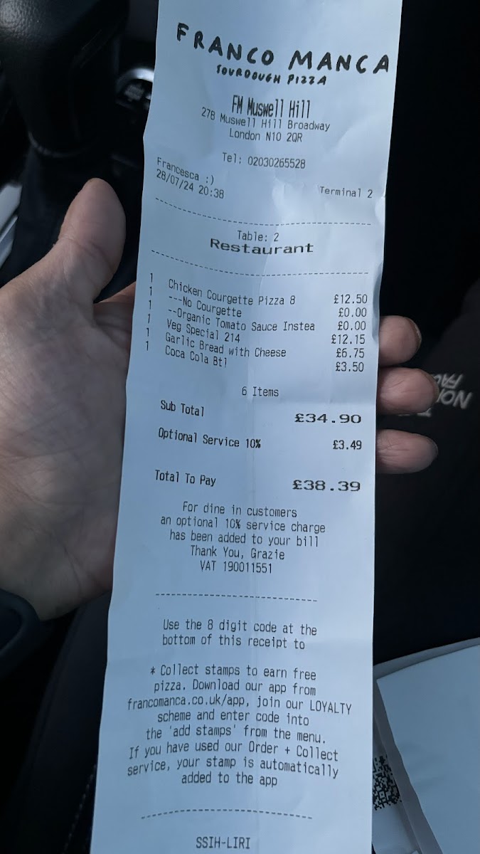 Franco Manca Muswell Hill Menu